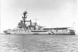 - ↑ La date de 1938 est quelque peu variable ; Topliss écrit "Une... modernisation fut entreprise au Brésil durant les années 1930. Le navire reçut le statut de réparation le 10 juin 1931 et ne réalisa des essais en mer que le 22 avril et le 9 mai 1938. Le navire retourna au service actif que le 10 juin 1938 mais les travaux ne furent pas terminés avant 1940"[83].