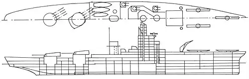 | Armement | (3 × 3) × 406 mm[4] (10 × 2) × 127 mm[4] Nombre variable de canons antiaériens de 40 et 20 mm[4] |