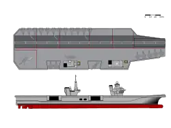 | Aéronefs | 36 - 48 Lockheed F-35B Lightning II 14 Leonardo EH101 Merlin ou Boeing AH-64 Apache |