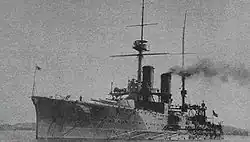Durant la Première Guerre mondiale il servit de patrouilleur dans le Pacifique sud et l'Océan indien, pour protéger les voies maritimes des attaques allemandes, dans le cadre de l'effort de guerre de l'alliance anglo-japonaise. Il participa aussi à la Bataille de Tsingtao entre le et .