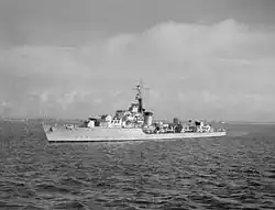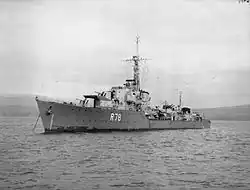 | Armement | 4 pièces de 120 mm (4 x 1) 8 tubes lance-torpilles 530 mm (2 x 4) 4 canons QF 40-mm Mk.VIII 2 canons Bofors 40 mm 4 canons 20 mm Oerlikon (2 x 2) 4 canons 113 mm 4,5 pouces QF Mark I - V 70 charges de profondeur |