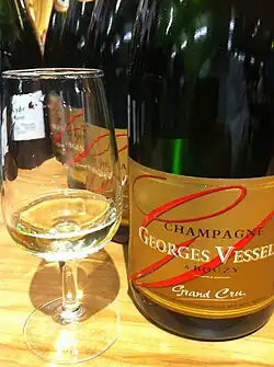 Le champagne est avant tout le produit d'un vaste assemblage - de différents cépages, de différents millésimes et de différents vignobles - un assemblage non millésimé typique étant composé de raisins provenant de jusqu'à 80 vignobles différents. Toutefois, pour leur cuvée de prestige (comme le Dom Pérignon de Moët et Chandon ou le Cristal de Louis Roederer), les producteurs de champagne limitent souvent les sources de raisins aux vignobles Grand cru (et parfois Premier cru). Bien que les champagnes à vignoble unique soient rares, il en existe, comme le Clos du Mesnil de Krug qui provient d'un vignoble de grand cru situé au Mesnil-sur-Oger[6]. Les Champagnes de vignerons, produits par un seul producteur et propriétaire de vignoble, situés dans des villages de grand cru, étiquetteront souvent leurs vins « 100 % grand cru » s'ils peuvent prétendre à cette appellation[5].