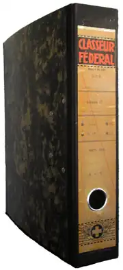 - ↑ Déjà 100 ans que le classeur fédéral assure ordre et rangement. Swissinfo, 18 septembre 2008.