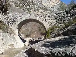 L'arc de plein cintre est composé d'un demi-cercle complet, c'est le type de voûte le plus rencontré, présent dans environ 67 % des ponts ferroviaires en maçonnerie du réseau français. Les voûtes peuvent être surhaussées (c'est le cas pour le vieux pont de Gien), outrepassées (légère extension du demi-cercle) ou bombées (légère diminution du demi-cercle). Les Romains utilisèrent quasi exclusivement ce type de voûte[A 1],[1]. | |