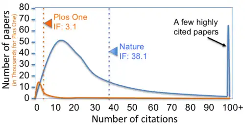 Ensuite, bien que la publication d'un article dans une revue à haut facteur d'impact ne garantisse pas les citations, elle constitue un critère d'évaluation de la productivité et impose aux chercheurs une importante pression de publication[96]. Le risque est ici que les chercheurs se préoccupent plus d'augmenter leur nombre de publications selon le principe « publier ou périr » que de réaliser des travaux scientifiquement intéressants. En effet, pour les chercheurs, le nombre de publications est maintenant un déterminant majeur de leur carrière, des possibilités de promotions, de leur salaire, voire la continuité de leur emploi[97].