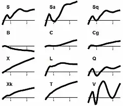 | Xc | Gradient faible à moyen avec légère courbure tournée vers le bas. | 21, 97, 739 | |
