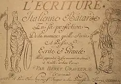 - Nouveau livre d'escriture financière composé de differens exemplaires. Gravé par Claude Auguste Berey..., Paris : l’auteur, [c. 1694-1695] (Chicago NL : Wing ZW 639.B 492). Cat. Destailleur n° 851/6°.