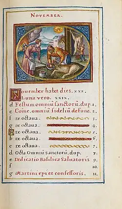 - 1610 : Lectionnaire festif de l'office à l'usage de Notre-Dame de Paris. Manuscrit en latin sur parchemin, 119 f. avec notations musicales carrées sur 4 lignes en rouge. 365 x 240 mm. Reliure du temps. Signé au f. 110v : « Magister Claudius Ruffinus, vicarius Sancti Aniani in ecclesia Parisiensi, scripsit hunc librum. 1610 ». Prov. Chapitre cathédral de Paris. Paris Maz. : Ms 402. Quelques pages sont reproduites dans la base Liber floridus du CINES : voir ici.
