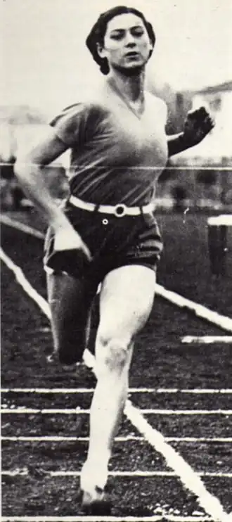 En 1938, elle devient championne d'Europe en égalant le record du monde établi par Valla deux ans plus tôt.
