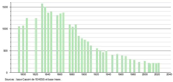 - ↑ Fiches Insee - Populations de référence de la commune pour les années 2006, 2007, 2008, 2009, 2010, 2011, 2012, 2013, 2014, 2015, 2016, 2017, 2018, 2019, 2020, 2021 et 2022.