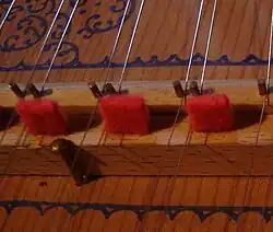 Certains dispositifs peuvent altérer le son en venant appliquer un dispositif supplémentaire sur la corde, tout près du sillet : feutre ou cuir amortissant la vibration de la corde et appelé le « jeu de luth »[13] (en anglais : buff stop, à ne pas confondre avec lute stop, cf. supra), métal pour l'arpichordum.