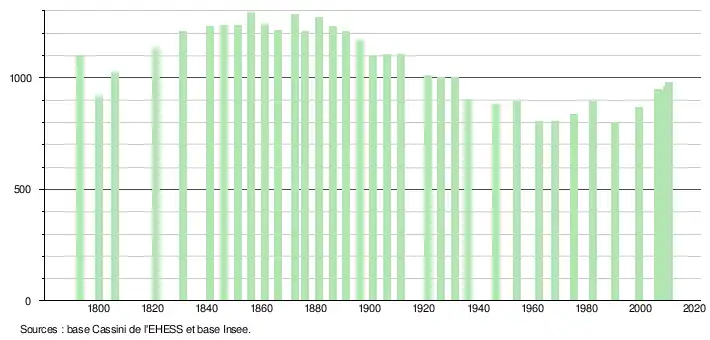 Le maximum de la population a été atteint en 1856 avec 1 292 habitants.