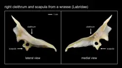 Chez les poissons modernes, le cleithrum est un grand os qui s'étend vers le haut à partir de la base de la nageoire pectorale jusqu'au crâne au-dessus des branchies[2]. Cet os a un intérêt pour les scientifiques car il peut permettre de déterminer l'âge d'un poisson.