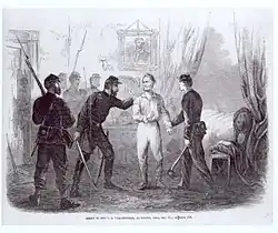 Vallandigham est arrêté le par la prévôté, en application du General Order Number 38, un décret promulgué par le général Ambrose Burnside, alors chef de la région militaire de l'Ohio. Burnside, choisi par Lincoln pour sa fidélité, avait édicté le que « tout sympathisant avec l'ennemi (que ce soit en paroles ou en actions) serait jugé, et condamné à la détention, à l'expulsion au-delà des lignes, voire passé par les armes ». Vallandigham s'insurge violemment contre l'édit, et déclare entre autres que le gouvernement fédéral « avait l'intention de libérer les Noirs, et de réduire les Blancs en esclavage ».