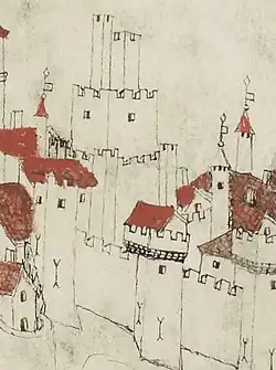 - ↑ Josiane Teyssot, « Les forteresses urbaines : les châteaux de Riom et de Montferrand en Auvergne aux XIVe – XVe siècles », Château Gaillard : études de castellologie médiévale : XVIII : actes du colloque international tenu à Gilleleje, Danemark, 24-30 août 1996, (ISBN 290268505X).