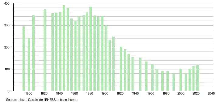 - ↑ Fiches Insee - Populations de référence de la commune pour les années 2006, 2007, 2008, 2009, 2010, 2011, 2012, 2013, 2014, 2015, 2016, 2017, 2018, 2019, 2020, 2021 et 2022.