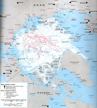 L'Union soviétique s'est également intéressée à l'Arctique et y a établi une présence significative en poursuivant les stations dérivantes North-Pole. Ce programme a fonctionné sans interruption, avec 30 stations dans l'Arctique de 1950 à 1991. Ces stations ont recueilli des données qui sont encore précieuses aujourd'hui pour comprendre le climat du bassin arctique.