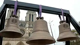 - ↑ « JO Paris 2024 : la cloche du Stade de France installée à la Cathédrale Notre-Dame de Paris », sur Le Figaro, (consulté le )