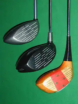 - Bois : ils se nomment ainsi car, originellement, ils possédaient une tête faite en bois. Au départ de chaque trou, la balle est placée sur un tee pour effectuer des longues distances sur le fairway. Leur loft (angle entre la verticale et la face du club) varie selon l'effet recherché. Outre le bois, la tête peut être constituée de titane ou de matériaux composites.