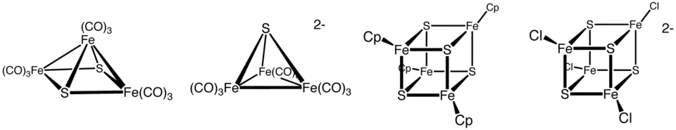 Un grand nombre de clusters Fe-S sont connus en chimie organométallique et comme précurseurs d'analogues synthétiques aux clusters biologiques.