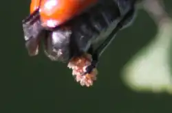 Il se distingue des coccinelles (famille des Coccinellidae) par sa forme plus allongée et les tarses (extrémités des pattes) formés de cinq parties (trois pour les coccinelles).