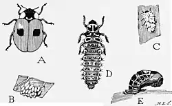 La femelle pond entre 20 et 50 œufs par jour. La larve des coccinelles est appelée triongulin.