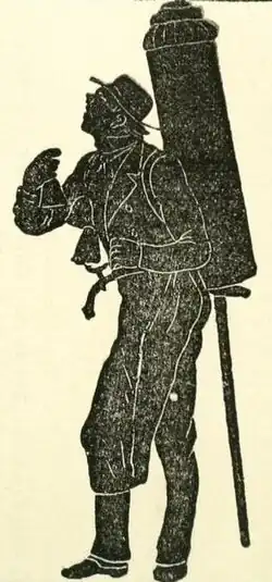 - ↑ Détail d'un dessin de J.L.Hernault, gravé par L.Dumont, paru en page de couverture du journal Le Voleur, du 27 août 1858.