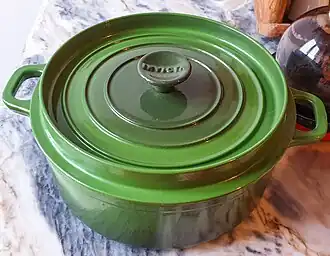 La production moderne, depuis 1950, est assurée par des fonderies pour la plupart établies dans le Nord de la France, sous des marques comme De Dietrich (fondé en 1843 à Reichshoffen, dans le Bas-Rhin), Godin (fondé à Guise, dans l'Aisne, en 1846), Invicta (fondé à Donchery, dans les Ardennes, en 1924[21]), Le Creuset (fondé à Fresnoy-le-Grand, dans l'Aisne, en 1925), Staub (fondé à Turckheim, dans le Haut-Rhin, en 1974) ou encore Baumalu (fondé à Baldenheim, dans le Bas-Rhin, en 1971).