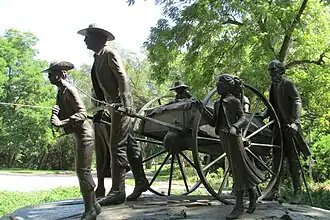 Les colons en route vers l’Ouest ont eux aussi emporté leurs fours néerlandais. Ce récipient faisait partie de l'équipement de Lewis et Clark dans leur exploration du grand Nord-Ouest américain en 1804-1806. Les pionniers mormons qui s'établirent dans l'Utah avaient également avec eux leurs fours hollandais. De fait, les monuments érigés en l'honneur des charrettes à bras, tout au long du Mormon Trail qui devait les mener jusqu'au Grand Lac Salé, dans les années 1850, affichent fièrement leurs fours hollandais suspendus à l'avant des chariots. Ce type de récipient est ainsi devenu l'un des symboles officiels des États du Texas, de l'Utah et de l'Arkansas[16],[17],[18].
