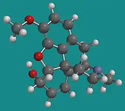 | Structure 2D et modèle boules-bâtonnets de la codéine. | ||