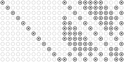 - Le générateur "Miracle Octad Generator" de R. T. Curtis : Ceci emploie des cellules carrés 4×6 pour décrire les 759 mots de code qui ont un poids de Hamming de 8, ou des "octads," du code binaire étendu de Golay. Les mots de code restants sont obtenus par l'intermédiaire des différences symétriques des sous-ensembles des 24 cellules -- c.-à-d., par addition binaire. Pour des détails, voir la géométrie de la place 4×4.