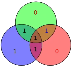 Si, par exemple les trois parités des trois cercles sont modifiées, alors il existe une erreur sur le bit d4. Pour chaque bit, une erreur engendre un jeu de parité différent. Si aucune erreur n'altère le message alors les trois parités sont à oui.