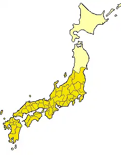 Le pays, alors divisé en régions selon le Gokishichidō, est divisé en provinces appelées kuni (国), et le gouvernement central installe des kokushi (国司). Les provinces sont ensuite divisées en districts (gun). Lors de l'application du code, il y a 68 provinces et 592 districts.