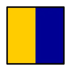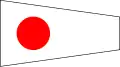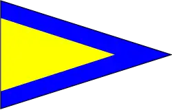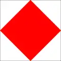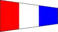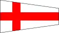 | Flamme du code / Aperçu | Au pendage (environ à mi-hauteur de la drisse) : Prêt à recevoir le message Gros plan : le message a été reçu et compris (la station émettrice doit hisser la flamme du code isolément après la dernière drissée du signal pour indiquer que le signal est terminé ; la station réceptrice doit répondre de la même manière qu'à toutes les autres drissées) Remonté : signale la fin du message. Avec chiffres : virgule décimale Par un navire de guerre : Hisse la flamme du code à un endroit visible et la conserve battante pendant toute la durée de la transmission du signal indiquant que le message doit être lu conformément au code international des signaux. |