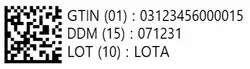 | 15 | Indique une DDM (Date de Durabilité Minimale) suivie de cette date au format AAMMJJ (année sur deux caractères + mois sur deux caractères + jours sur deux caractères) | 2 | 6 | 8 |