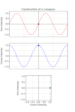 On peut contrôler le déphasage des sinusoïdes (90°) avec un oscilloscope en mode XY pour vérifier l'allure de la courbe de Lissajous : la quadrature est parfaite lorsque l'image obtenue est un cercle parfaitement centré.