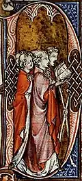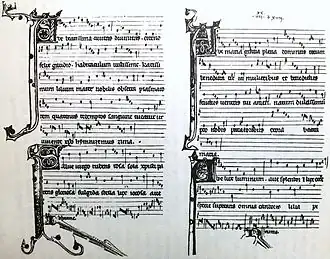 | 1 | 1 | Deus in adjutorium meum intende laborantium | conductus | 3 voix | B, Da, Tu | ROL | [4] Le fo 1 porte une lettrine en miniature où sont représentés trois chantres devant un lutrin, métonymie des trois voix de la pièce et de la polyphonie apparue à la fin du XIIe siècle[5]. Le thème est repris presque à l'identique par un autre artiste, au fo 348. |