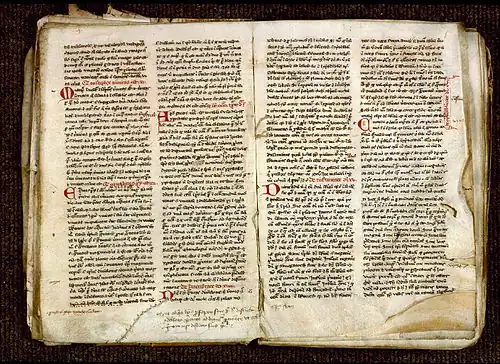• marques employées par les créateurs du codex pour répartir le travail entre plusieurs copistes ;