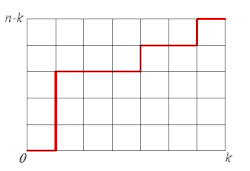 Une façon visuelle de comprendre cette définition consiste à associer à chaque mot un chemin à travers une grille rectangulaire de côtés de hauteur et de largeur , du coin inférieur gauche au coin supérieur droit, en faisant un pas à droite pour chaque lettre 0 et un pas vers le haut pour chaque lettre 1. Le nombre d'inversions du mot est alors égal à l'aire de la partie du rectangle qui se trouve sous le chemin.