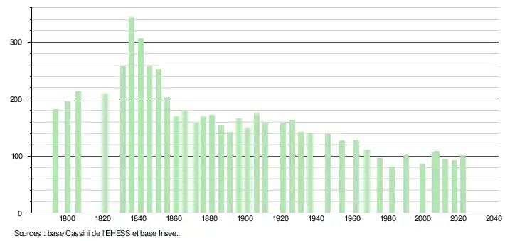 - ↑ Fiches Insee - Populations de référence de la commune pour les années 2006, 2007, 2008, 2009, 2010, 2011, 2012, 2013, 2014, 2015, 2016, 2017, 2018, 2019, 2020, 2021 et 2022.