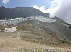 Vue en juillet 2008 du lac Sommeiller côté italien avec le col situé sur la rive opposée. | ||||||