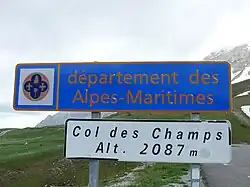 Le col des Champs est un col de montagne routier situé à 2 045 m d'altitude, à la limite des départements des Alpes-de-Haute-Provence et des Alpes-Maritimes (France), alors que la route culmine à 2 087 m[1]. Le col se trouve en bordure de la zone centrale du parc national du Mercantour.