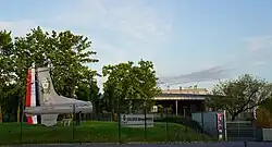 Le bâtiment date de 1999. Il est l’œuvre des architectes François Fontes, Olivier Fassio et Jean-Brice Vuaud. Son originalité tient à sa forme d’un ancien stade d’athlétisme fermé, ainsi que par la nature des matériaux de verre et d’aluminium qui le constitue vu de l’extérieur. Le préau est réalisé en toile tendue[3].