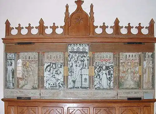 Il s’agit d’un polyptyque du XVe siècle composé de sept panneaux, dont quatre consacrés à la Vierge. On l’attribue à un atelier de Nottingham, en Angleterre, dont la production est bien connue.