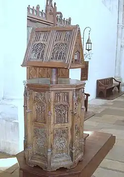 Sculptée au XVe siècle, la chaire est une véritable dentelle de bois.