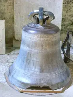 Il s'agit d'une cloche fondue en 1623, inscrite à l'inventaire des monuments historiques. Légèrement fêlée, elle fut remplacée dans la Porte d'en Haut en 1994 par deux cloches plus petites. |
