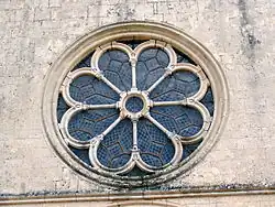 La rosace est, dans son genre, l'une des plus anciennes de France. Ses huit rayons sont formés de fines colonnettes et terminés par une arcature ajourée.
