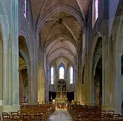 Au XVe siècle, de nombreux travaux aménagement y sont apportés : la nef est allongée, ce qui entraîne l'annexion de la chapelle de l’Aumône de la Petite Fusterie (datant de 1391) et l'on construit la façade (1485), le parvis et l'escalier monumental. L'édifice est contrebuté par des arcs-boutants, pratique rare dans la région, seule l'abside est épaulée de contreforts[2].