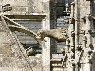 Cénotaphe de Tristan de Carné, seigneur de Crémeur et capitaine de Guérande, et de son épouse Jeanne de La Salle, dans la crypte. Réalisée en kersantite au XVIe siècle sur commande de leur fils, cette œuvre témoigne de la puissance du couple ayant servi les ducs de Bretagne puis les rois de France[10].