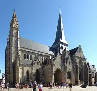 L'église est située au centre de la cité médiévale de Guérande entourée par ses remparts.
